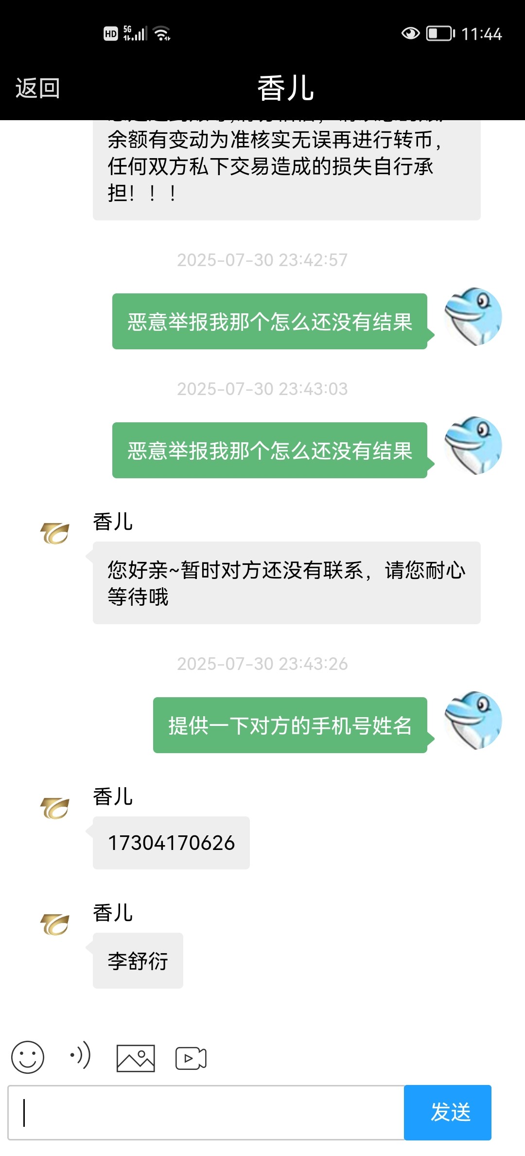 电话姓名17304170626李舒衍。有没有老哥遇见这种人的我出1k分已经交易成功了,后面不知道他是不是挂逼了,来举报我想要回钱什么人都有,老哥们帮帮制裁他感谢老哥们