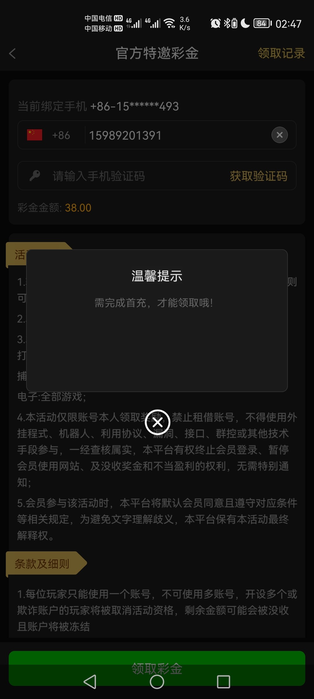 特邀碰瓷,活动里自助领取38
